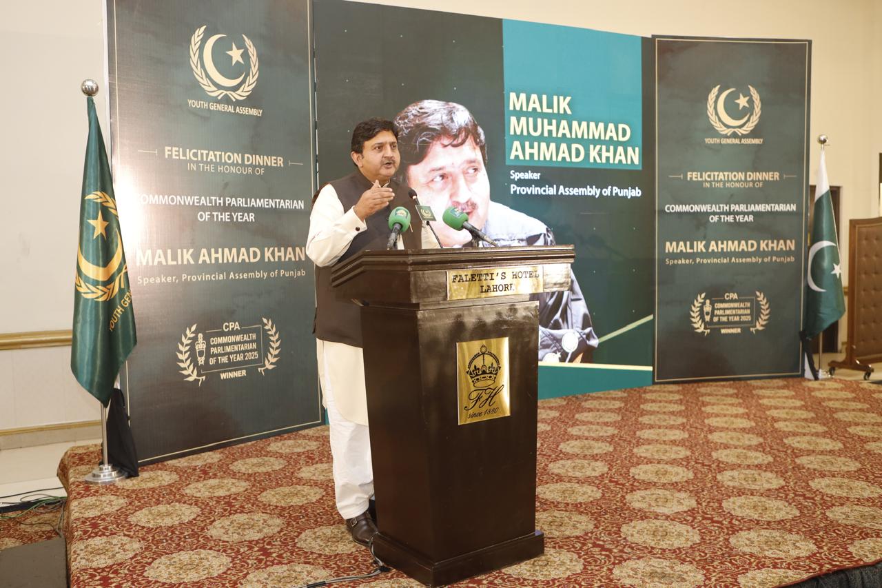 Metro53 - LAHORE: The Youth General Assembly (YGA) hosted a dinner reception in honour of Punjab Assembly Speaker Malik Muhammad Ahmad Khan to celebrate his selection as the “Commonwealth Parliamentarian of the Year 2025” by the Commonwealth Parliamentary Association (CPA).